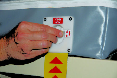 Wbudowany zawór PCR usuwa powietrze z materaca w celu umożliwienia procedury resuscytacji.
